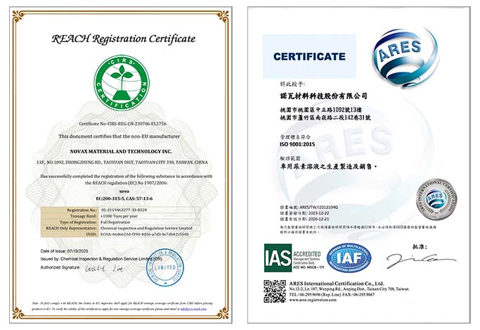 諾瓦產品UREA已經完成歐洲化學品管理局(ECHA)尿素化學品註冊,並於2023年7月19日取得REACH登記許可證,以確保我們的產品能夠合法供應歐洲客戶。