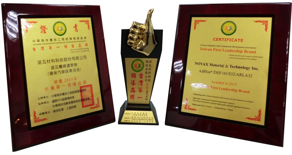 賀!諾瓦榮獲2015「台灣第一領導品牌」 (中華兩岸優良工商經貿發展協會頒發認證) 諾瓦用觸媒還原劑為地...