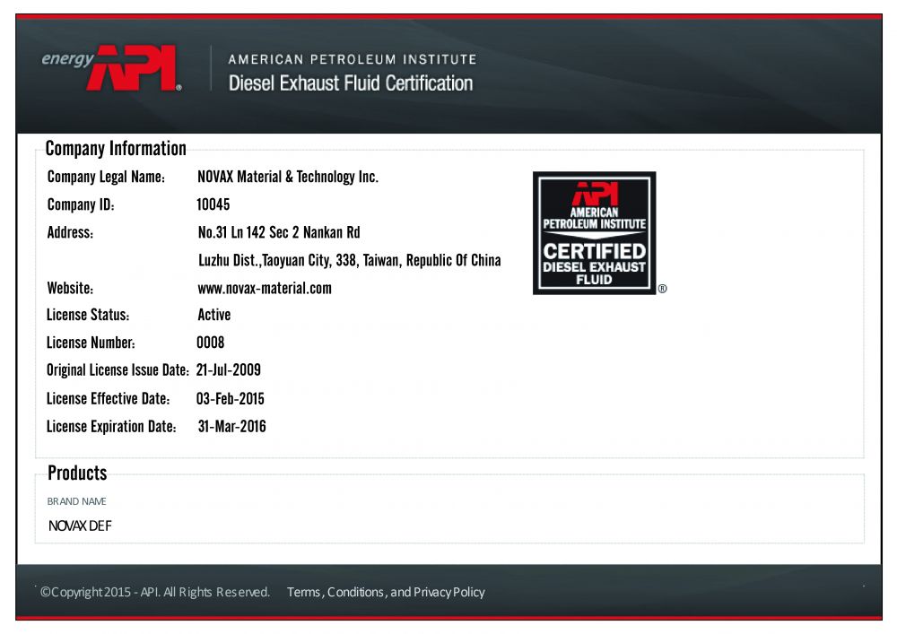 賀!諾瓦材料通過『美國石油學會American Petroleum Institute (API)』認證 美國石油學會(Americ...