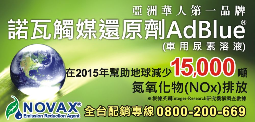 諾瓦公司積極拓展全球AdBlue®觸媒還原劑(車用尿素溶液) 市場,繼在台灣台中、高雄、美國及中國...