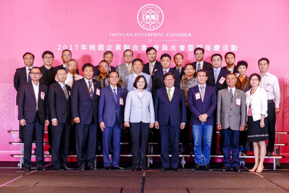 「桃園企業聯合會會員大會暨周年慶」、23日於桃園機場園區諾富特飯店舉行。總統蔡英文由市長鄭文燦陪同...