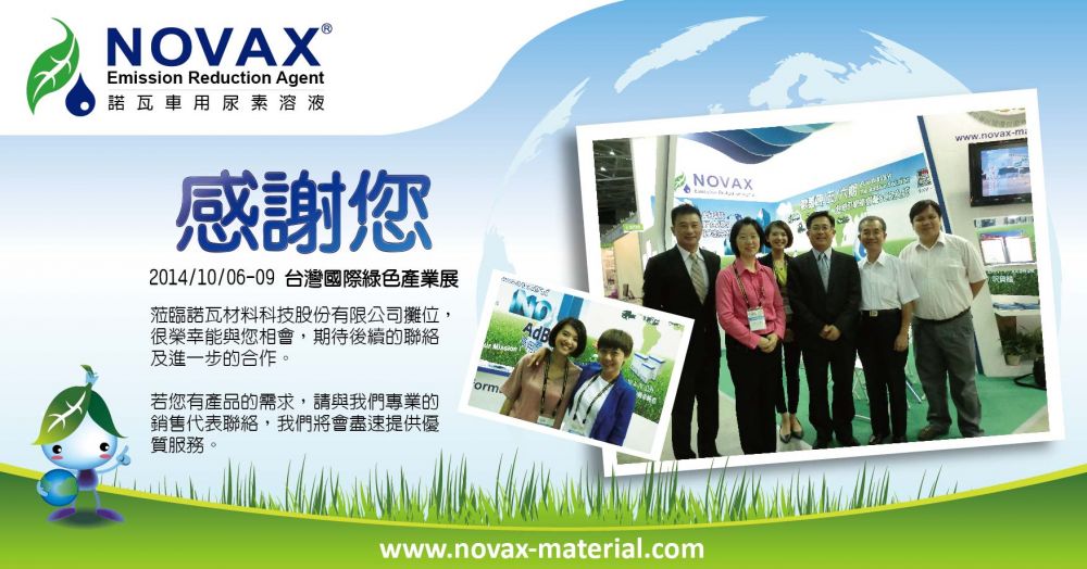 諾瓦材料科技股份有限公司於 2014年10月06日至10月09日 出席台灣國際綠色產業展。上星期四,圓滿落幕。感謝業界先進前來展位指教,因為客戶的肯定與指教,相信諾瓦將會持續成長,提供更優質的服務,回饋廣大的客戶!