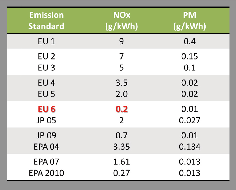 以符合歐盟汽車廢氣排放標準Euro 4、Euro 5、Euro 6